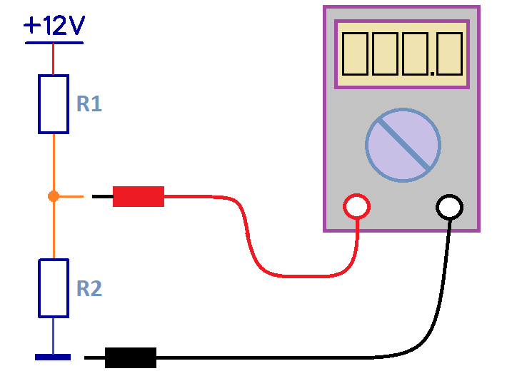 Enne kui voltmeetri juurde jõuame, räägime natuke pingejaguritest. Oletame, et meil on vaja teha kahest takistist pingejagur. Lihtne ülesanne, kas pole? Võtame kaks takistit, ühendame need jadamisi toiteallikale ning takistite keskpunktist võtame väljundi (nagu all oleval joonisel).