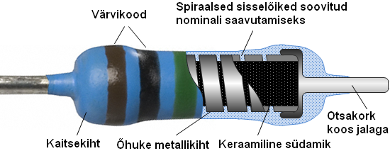 Süsinik kiht takistid - Sellist tüüpi takistite valmistamisel kaetakse keraamiline südamik süsivesinike kihiga, misjärel lõigatakse sellesse kihti spiraalsed avad ja kaetakse kaitseks keraamilise toru või epoksüüd- kattega. Takistuselemendi spiraaljas kuju tõstab tublisti induktiivsust, mistõttu ei ole need eriti head kasutamiseks RF (raadio sagedus) ahelates. Takisti temperatuuri koefitsent jääb -100 ja -900ppm/°K vahele.