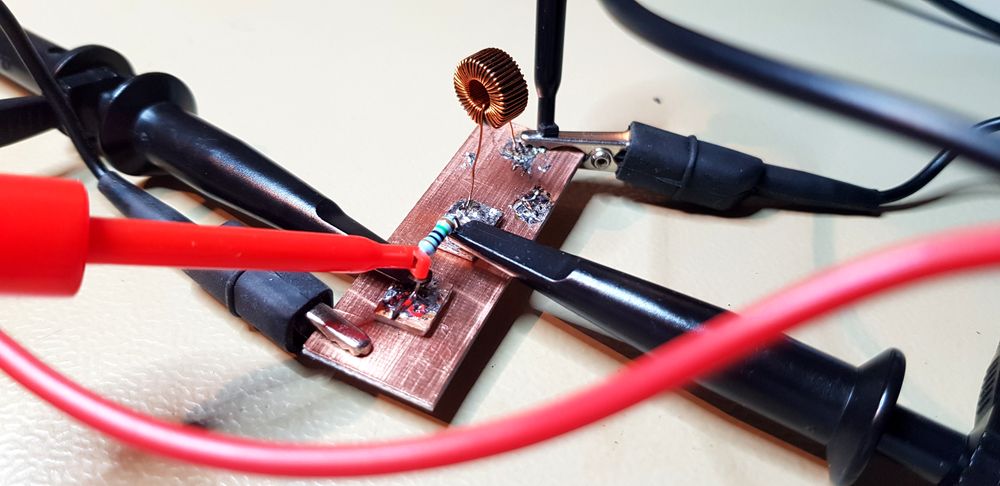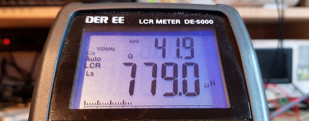 Miks just 41 keerdu? Sest täpselt niipalju keerde mahtus 0.3mm traadiga sellele südamikule. Eesmärgiks oli saavutada ca 1mH induktiivsust (~1,5kOhm@500kHz). Mõõtmise tulemusena õnnestus saavutada 780uH.